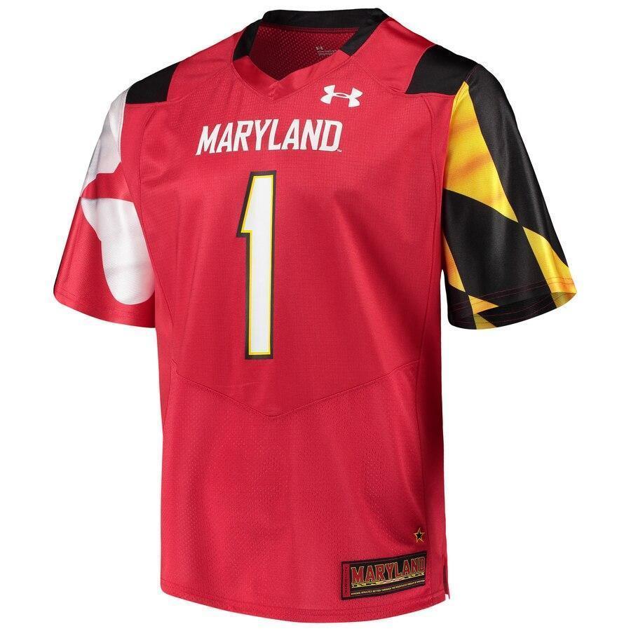 #1 Maryland Terrapins Under Armour Team Replica Football Jersey - Red