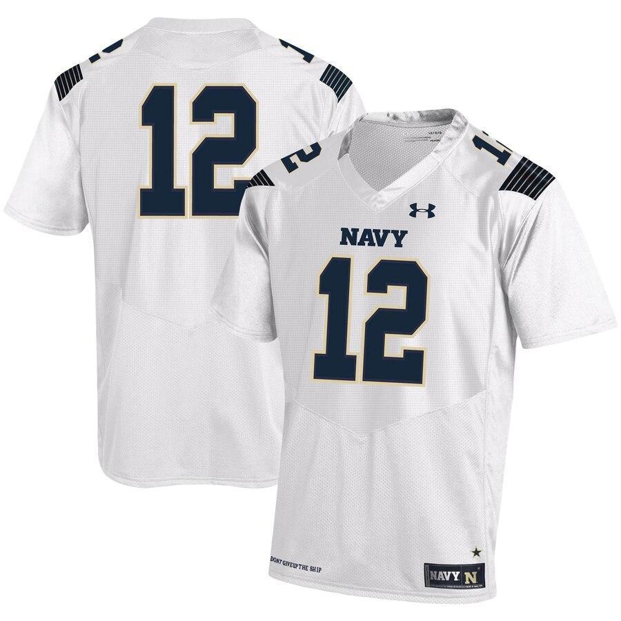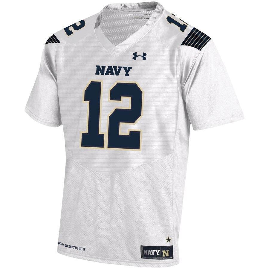 #12 Navy Midshipmen Under Armour Replica Football Jersey - White